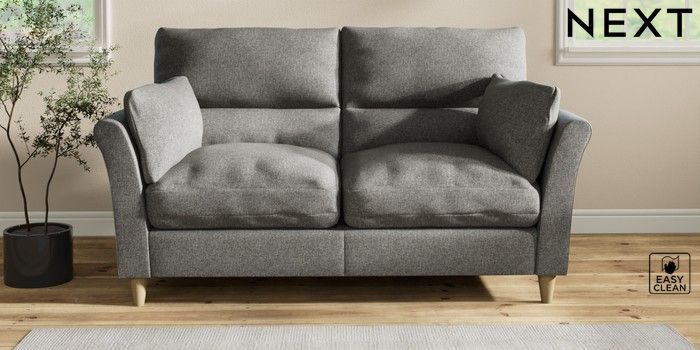 7.2.10 Buy Hartley Highback Relaxed Sit 3 Seater Small Sofa Tweedy Blend Easy Clean Dark Grey Low Conical - Light from the Next UK online shop Click here to use our accessible website