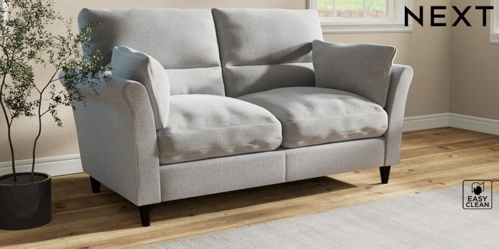 7.3.1 Buy Hartley Highback Relaxed Sit 3 Seater Small Sofa Tweedy Blend Easy Clean Light Silver Grey Low Conical - Dark from the Next UK online shop