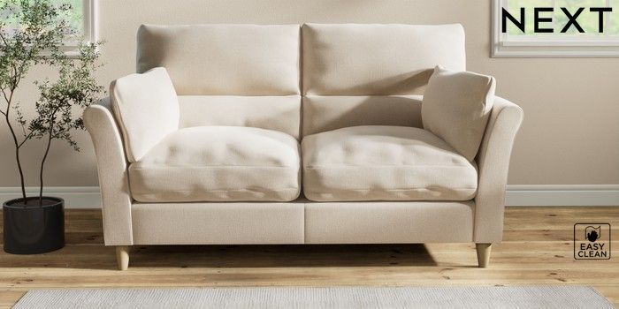 7.2.10 Buy Hartley Highback Relaxed Sit 3 Seater Small Sofa Tweedy Blend Easy Clean Oyster Low Conical - Light from the Next UK online shop Click here to use our accessible website