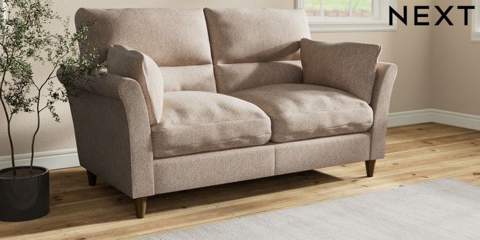 7.3.1 Buy Hartley Highback Relaxed Sit 3 Seater Small Sofa Tweedy Chenille Mid Natural Low Conical - Mid from the Next UK online shop
