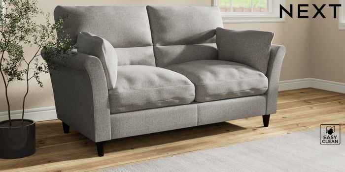 7.3.1 Buy Hartley Highback Relaxed Sit 3 Seater Small Sofa Woven Chenille Easy Clean Light Grey Low Conical - Dark from the Next UK online shop