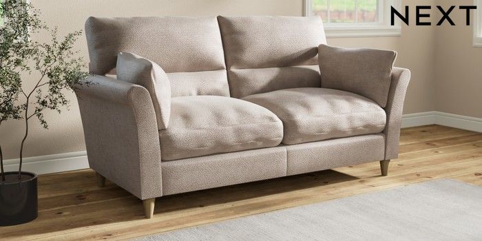 7.3.1 Buy Hartley Highback Relaxed Sit 3 Seater Sofa Boucle Chenille Light Natural Low Conical - Light from the Next UK online shop