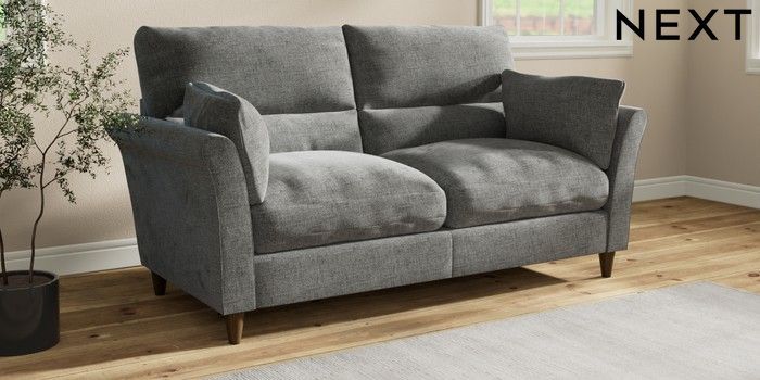 7.3.1 Buy Hartley Highback Relaxed Sit 3 Seater Sofa Chunky Chenille Dark Grey Low Conical - Mid from the Next UK online shop
