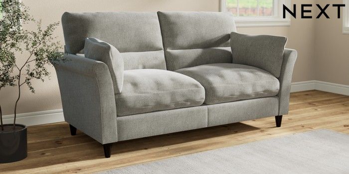 7.3.1 Buy Hartley Highback Relaxed Sit 3 Seater Sofa Chunky Chenille Light Grey Low Conical - Dark from the Next UK online shop