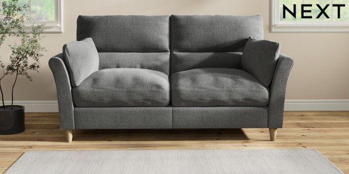 7.2.10 Buy Hartley Highback Relaxed Sit 3 Seater Sofa Chunky Texture Dark Grey Low Conical - Light from the Next UK online shop Click here to use our accessible website