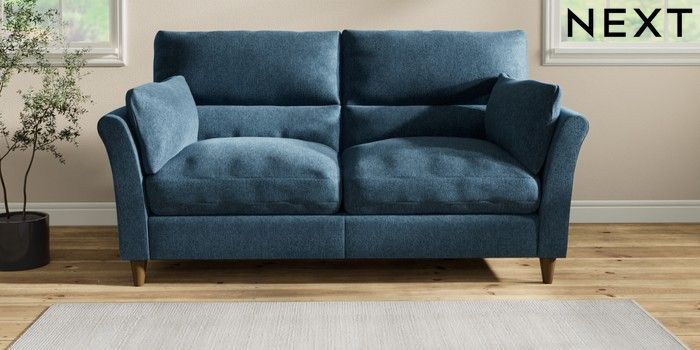 7.2.10 Buy Hartley Highback Relaxed Sit 3 Seater Sofa Cotswold Chenille Dark Blue Low Conical - Mid from the Next UK online shop Click here to use our accessible website