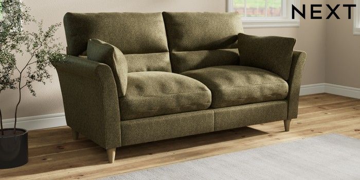 7.3.1 Buy Hartley Highback Relaxed Sit 3 Seater Sofa Cotswold Chenille Dark Green Low Conical - Light from the Next UK online shop