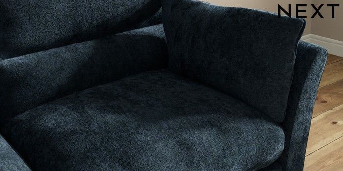 7.3.1 Buy Hartley Highback Relaxed Sit 3 Seater Sofa Distressed Velour Midnight Blue Low Conical - Light from the Next UK online shop