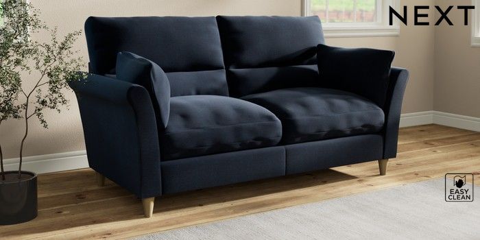 7.3.1 Buy Hartley Highback Relaxed Sit 3 Seater Sofa Fine Chenille Easy Clean Dark Navy Blue Low Conical - Light from the Next UK online shop