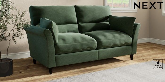 7.3.1 Buy Hartley Highback Relaxed Sit 3 Seater Sofa Fine Chenille Easy Clean Mid Khaki Green Low Conical - Dark from the Next UK online shop