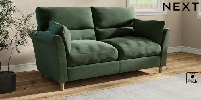 7.3.1 Buy Hartley Highback Relaxed Sit 3 Seater Sofa Fine Chenille Easy Clean Mid Khaki Green Low Conical - Light from the Next UK online shop