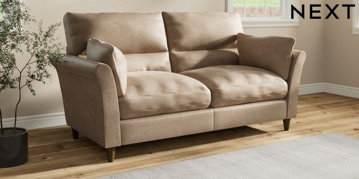 7.3.1 Buy Hartley Highback Relaxed Sit 3 Seater Sofa Luxe Chenille Mid Camel Beige Low Conical - Mid from the Next UK online shop