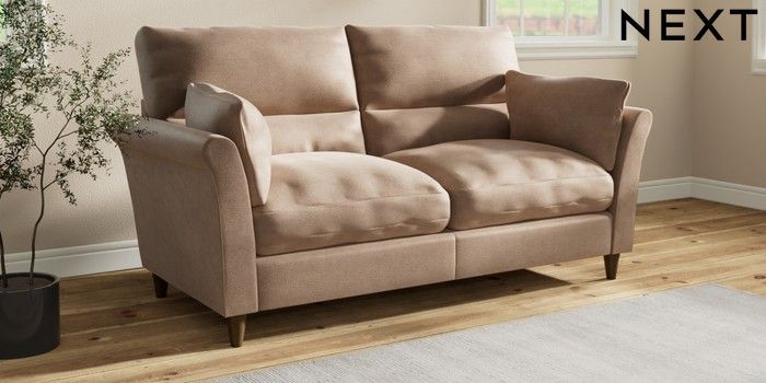 7.3.1 Buy Hartley Highback Relaxed Sit 3 Seater Sofa Luxe Chenille Mid Natural Low Conical - Mid from the Next UK online shop
