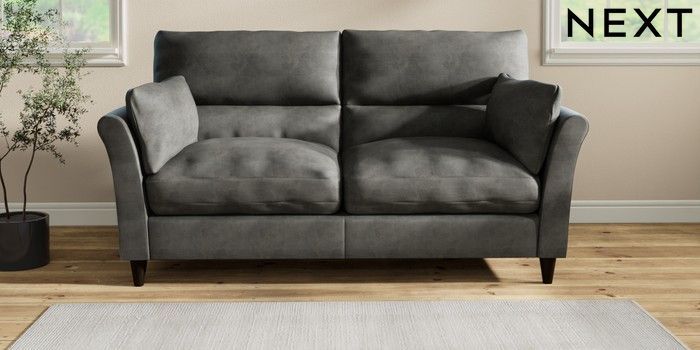7.3.1 Buy Hartley Highback Relaxed Sit 3 Seater Sofa Monza Faux Leather Easy Clean Dark Grey Low Conical - Dark from the Next UK online shop Click here to use our accessible website