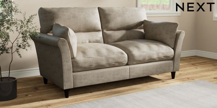 7.3.1 Buy Hartley Highback Relaxed Sit 3 Seater Sofa Monza Faux Leather Easy Clean Mink Brown Low Conical - Dark from the Next UK online shop Click here to use our accessible website