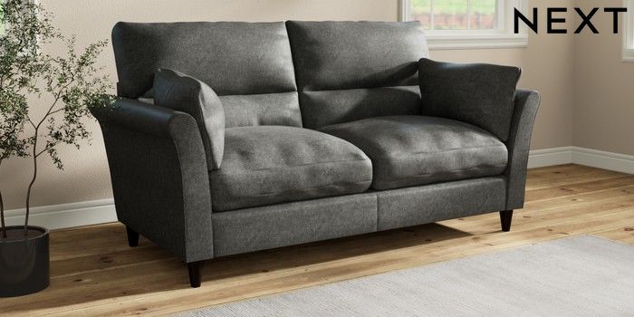 7.3.1 Buy Hartley Highback Relaxed Sit 3 Seater Sofa Plush Chenille Dark Grey Low Conical - Dark from the Next UK online shop