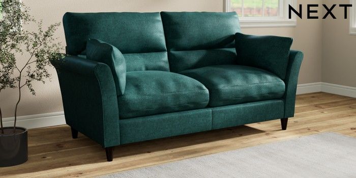 7.3.1 Buy Hartley Highback Relaxed Sit 3 Seater Sofa Plush Chenille Dark Teal Green Low Conical - Dark from the Next UK online shop