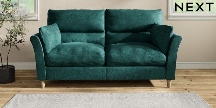 7.2.10 Buy Hartley Highback Relaxed Sit 3 Seater Sofa Plush Chenille Dark Teal Green Low Conical - Light from the Next UK online shop Click here to use our accessible website
