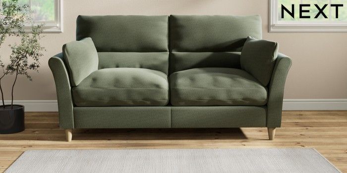 7.2.10 Buy Hartley Highback Relaxed Sit 3 Seater Sofa Relaxed Linen Look Dark Green Low Conical - Light from the Next UK online shop Click here to use our accessible website