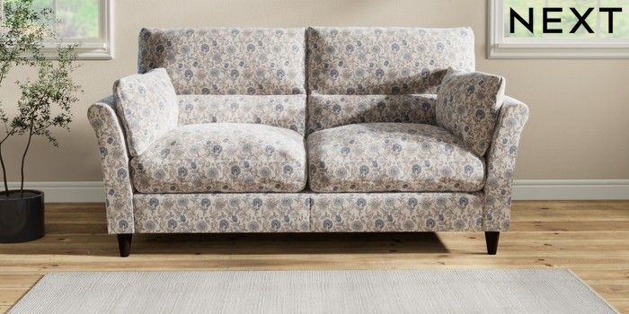 7.2.10 Buy Hartley Highback Relaxed Sit 3 Seater Sofa Relaxed Linen Look Print Woodblock Floral Blue Low Conical - Dark from the Next UK online shop Click here to use our accessible website