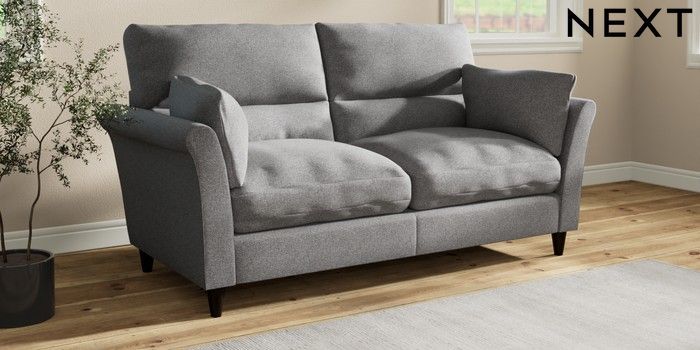 7.3.1 Buy Hartley Highback Relaxed Sit 3 Seater Sofa Studio Chenille Mid Grey Low Conical - Dark from the Next UK online shop