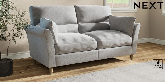 7.3.1 Buy Hartley Highback Relaxed Sit 3 Seater Sofa Tweedy Blend Easy Clean Light Silver Grey Low Conical - Light from the Next UK online shop Click here to use our accessible website