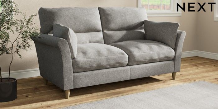 7.3.1 Buy Hartley Highback Relaxed Sit 3 Seater Sofa Tweedy Chenille Mid Grey Low Conical - Light from the Next UK online shop