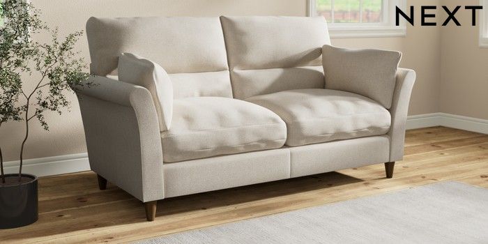 7.3.1 Buy Hartley Highback Relaxed Sit 3 Seater Sofa Tweedy Chenille Oyster Low Conical - Mid from the Next UK online shop