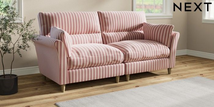 7.3.1 Buy Hartley Highback Relaxed Sit 4 Seater Sofa Bold Chenille Stripe Dark Pink Low Conical - Light from the Next UK online shop