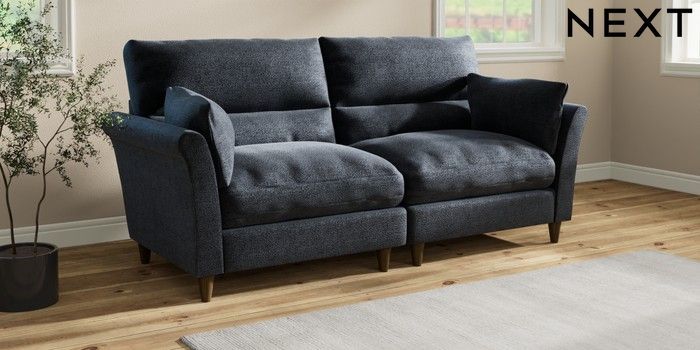7.3.1 Buy Hartley Highback Relaxed Sit 4 Seater Sofa Boucle Chenille Dark Slate Blue Low Conical - Mid from the Next UK online shop