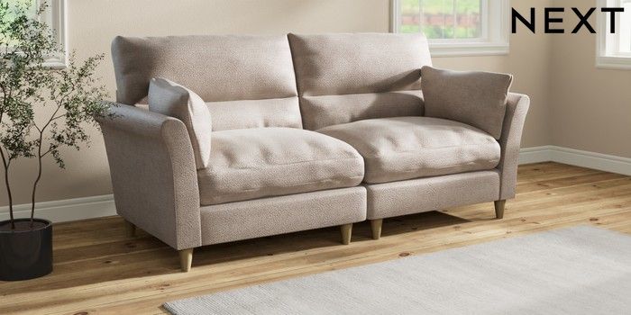 7.3.1 Buy Hartley Highback Relaxed Sit 4 Seater Sofa Boucle Chenille Light Natural Low Conical - Light from the Next UK online shop
