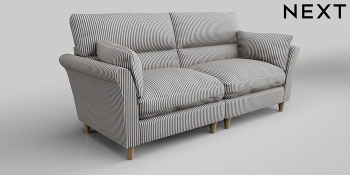 6.12.1 Buy Hartley Highback Relaxed Sit 4 Seater Sofa Chenille Stripe Slate Blue Low Conical - Light from the Next UK online shop Click here to use our accessible website