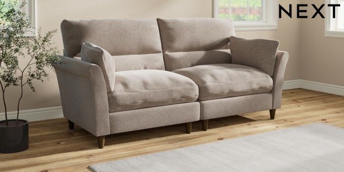 7.3.1 Buy Hartley Highback Relaxed Sit 4 Seater Sofa Chunky Chenille Light Dove Low Conical - Mid from the Next UK online shop