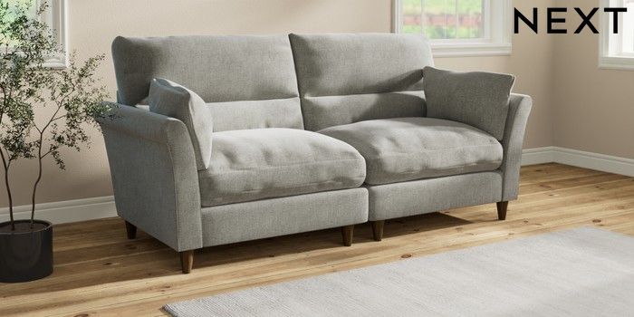 7.3.1 Buy Hartley Highback Relaxed Sit 4 Seater Sofa Chunky Chenille Light Grey Low Conical - Mid from the Next UK online shop