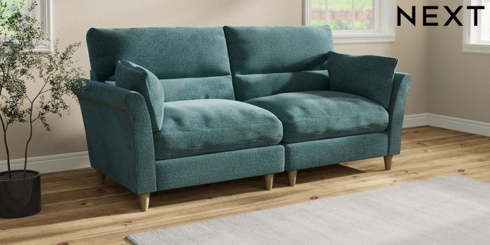 7.3.1 Buy Hartley Highback Relaxed Sit 4 Seater Sofa Chunky Chenille Mid Teal Green Low Conical - Light from the Next UK online shop