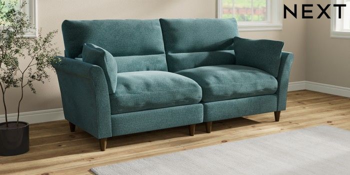 7.3.1 Buy Hartley Highback Relaxed Sit 4 Seater Sofa Chunky Chenille Mid Teal Green Low Conical - Mid from the Next UK online shop