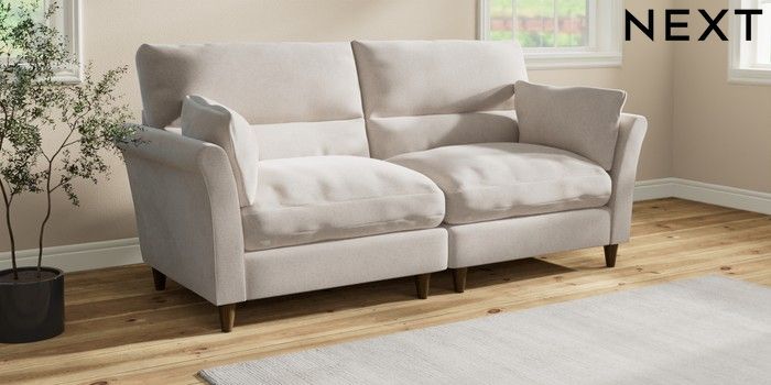 7.3.1 Buy Hartley Highback Relaxed Sit 4 Seater Sofa Chunky Chenille Oyster Low Conical - Mid from the Next UK online shop