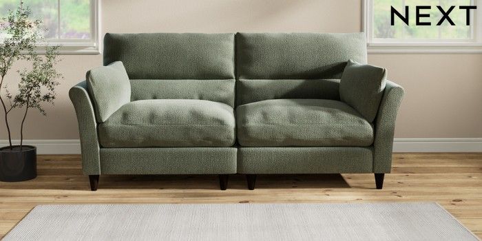7.2.10 Buy Hartley Highback Relaxed Sit 4 Seater Sofa Chunky Texture Mid Forest Green Low Conical - Dark from the Next UK online shop Click here to use our accessible website