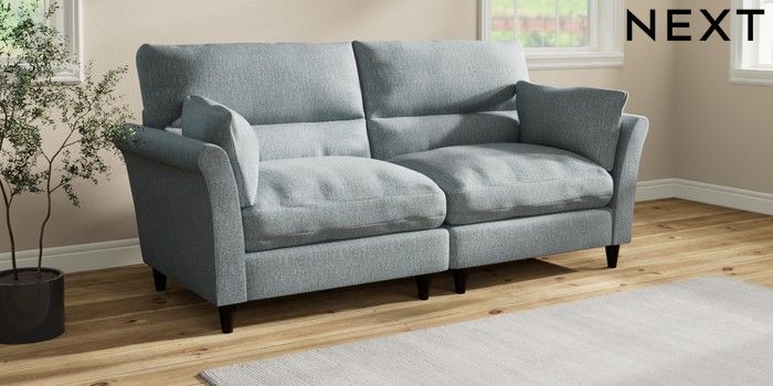 7.3.1 Buy Hartley Highback Relaxed Sit 4 Seater Sofa Chunky Weave Mid Blue Low Conical - Dark from the Next UK online shop