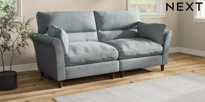 7.3.1 Buy Hartley Highback Relaxed Sit 4 Seater Sofa Chunky Weave Mid Blue Low Conical - Mid from the Next UK online shop