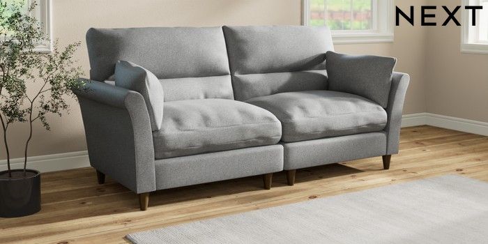 7.3.1 Buy Hartley Highback Relaxed Sit 4 Seater Sofa Chunky Weave Mid Grey Low Conical - Mid from the Next UK online shop