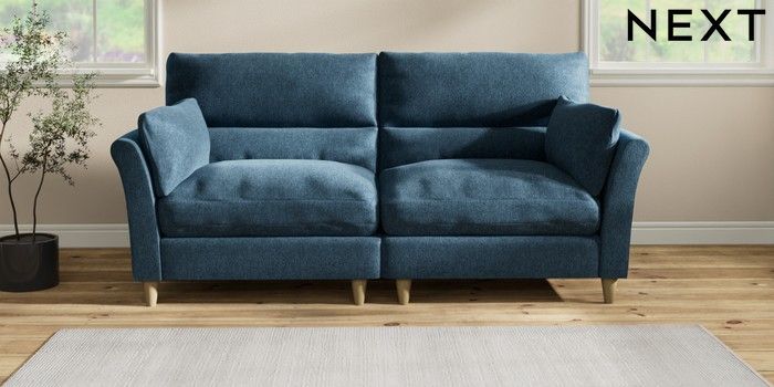 7.2.10 Buy Hartley Highback Relaxed Sit 4 Seater Sofa Cotswold Chenille Dark Blue Low Conical - Light from the Next UK online shop Click here to use our accessible website