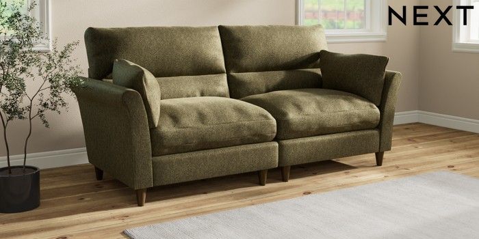7.3.1 Buy Hartley Highback Relaxed Sit 4 Seater Sofa Cotswold Chenille Dark Green Low Conical - Mid from the Next UK online shop