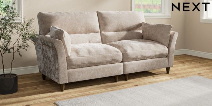 7.3.1 Buy Hartley Highback Relaxed Sit 4 Seater Sofa Distressed Velour Mid Natural Low Conical - Mid from the Next UK online shop
