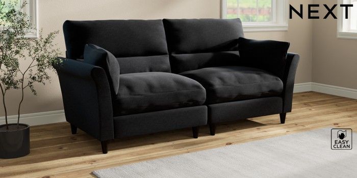 7.3.1 Buy Hartley Highback Relaxed Sit 4 Seater Sofa Fine Chenille Easy Clean Black Low Conical - Dark from the Next UK online shop