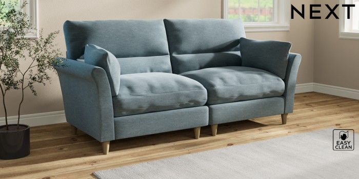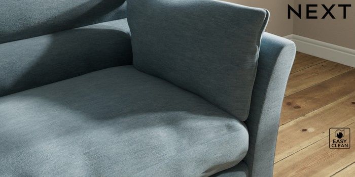 7.3.1 Buy Hartley Highback Relaxed Sit 4 Seater Sofa Fine Chenille Easy Clean Mid Blue Low Conical - Light from the Next UK online shop