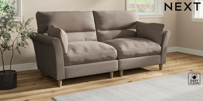 7.3.1 Buy Hartley Highback Relaxed Sit 4 Seater Sofa Fine Chenille Easy Clean Mid Taupe Brown Low Conical - Light from the Next UK online shop