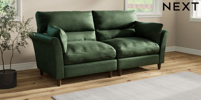 7.3.1 Buy Hartley Highback Relaxed Sit 4 Seater Sofa Luxe Chenille Dark Green Low Conical - Mid from the Next UK online shop