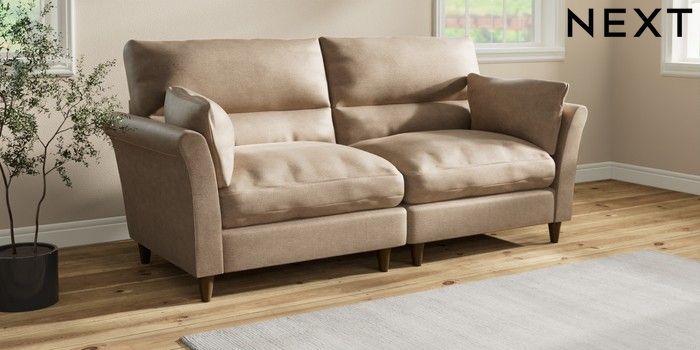 7.3.1 Buy Hartley Highback Relaxed Sit 4 Seater Sofa Luxe Chenille Mid Camel Beige Low Conical - Mid from the Next UK online shop