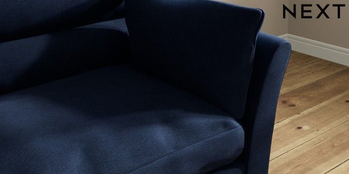 7.3.1 Buy Hartley Highback Relaxed Sit 4 Seater Sofa Luxe Chenille Navy Blue Low Conical - Light from the Next UK online shop